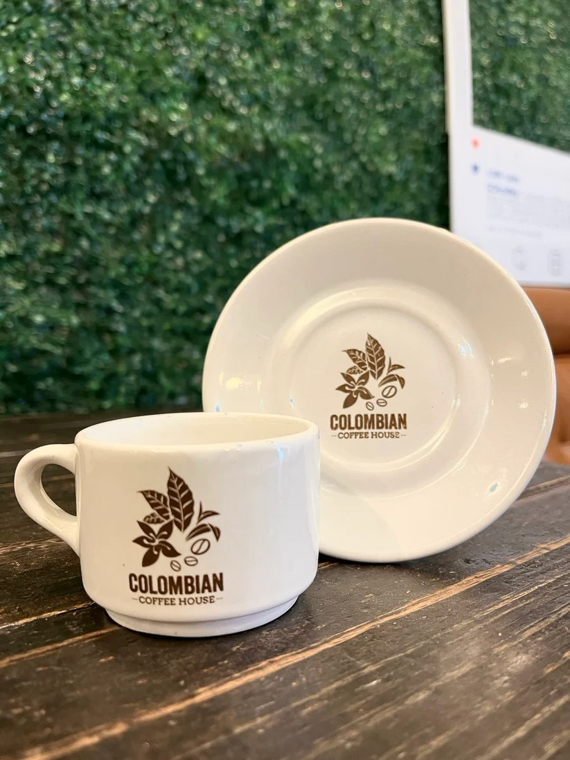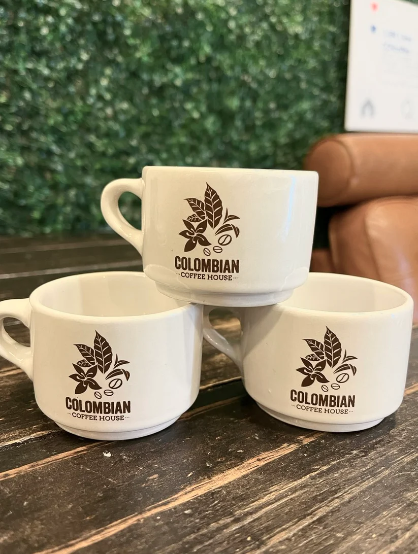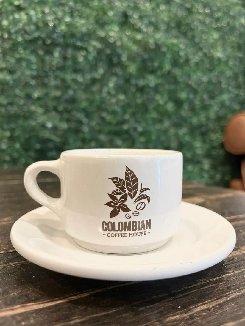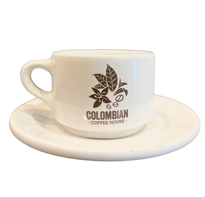 Enjoy these glossy white 3oz espresso glasses and saucers with the CCH logo. The perfect gift set. Order comes with two espresso glasses and two saucers.
